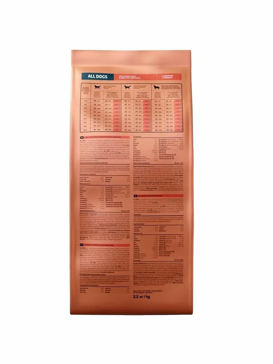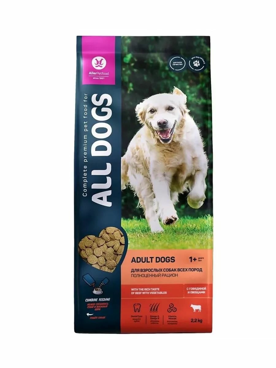 All Dogs Сухой корм для взрослых собак с говядиной и овощами 41 AL 921 2,200 кг 65559 (1 шт)