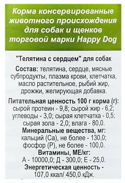 Консервы Happy Dog телятина с сердцем 410г х 12шт