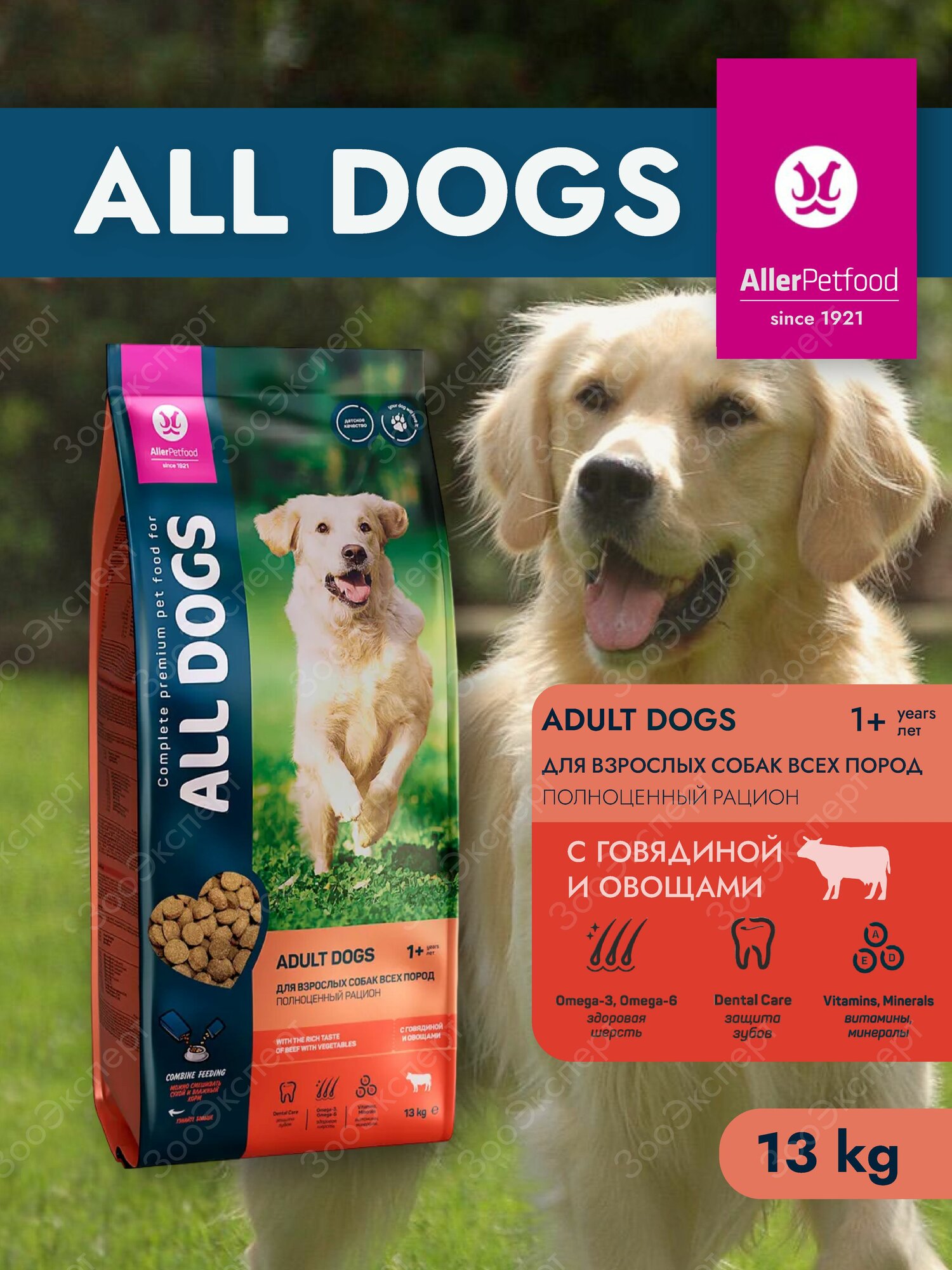 Сухой корм для собак ALL DOGS говядина, с овощами 1 уп. х 1 шт. х 13 кг