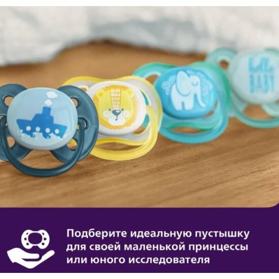 Пустышка PHILIPS AVENT SCF085/01 utra air, Слон/Лев, 0-6 мес, 2 шт, для мальчиков