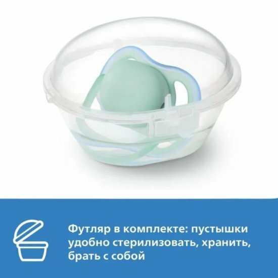 Пустышка Philips Avent Ultra air SCF085/60 с футляром для хранения и стерилизации 6-18месяцев 2шт 1шт!