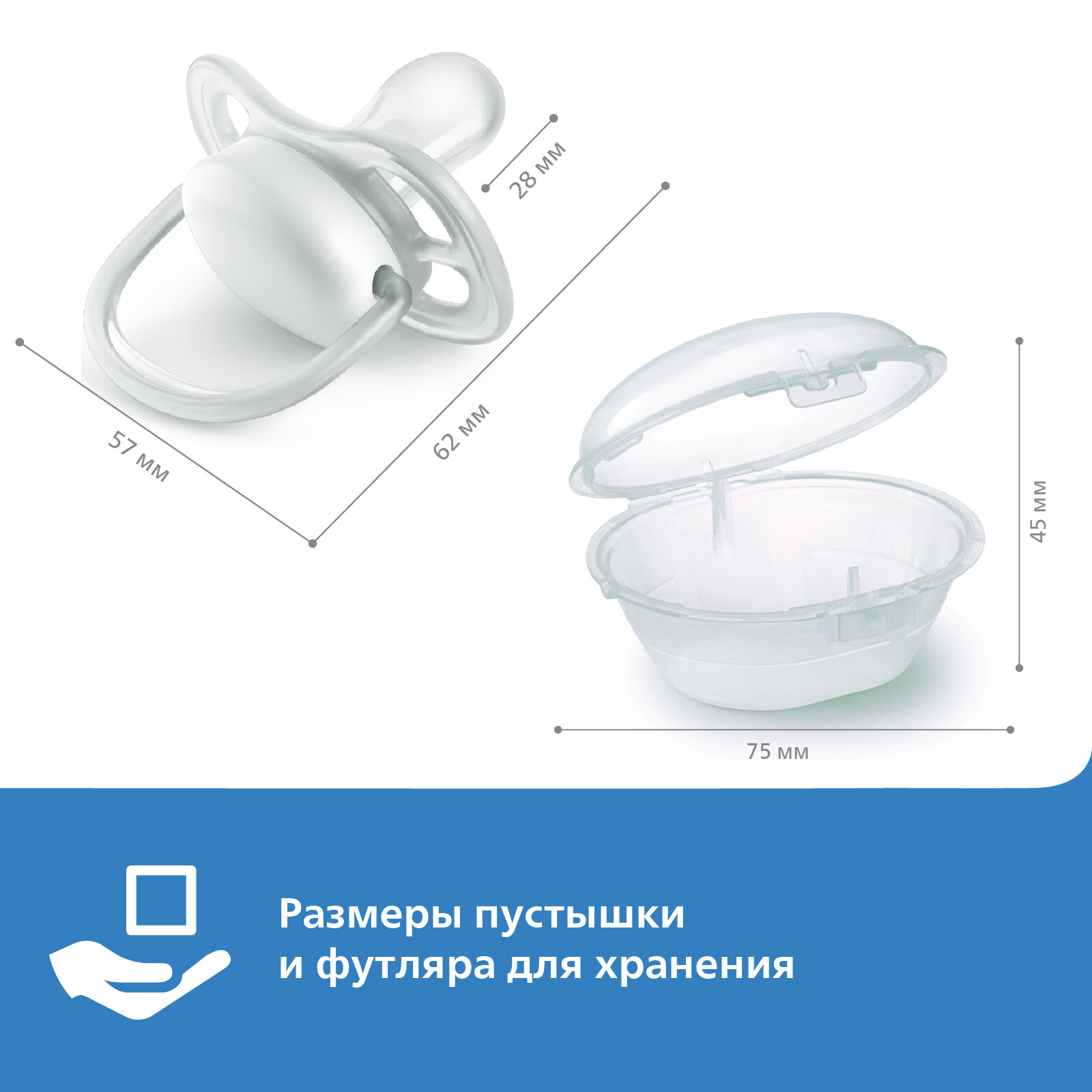 | Комплектация | пустышка - 2 шт, футляр для хранения/стерилизации |