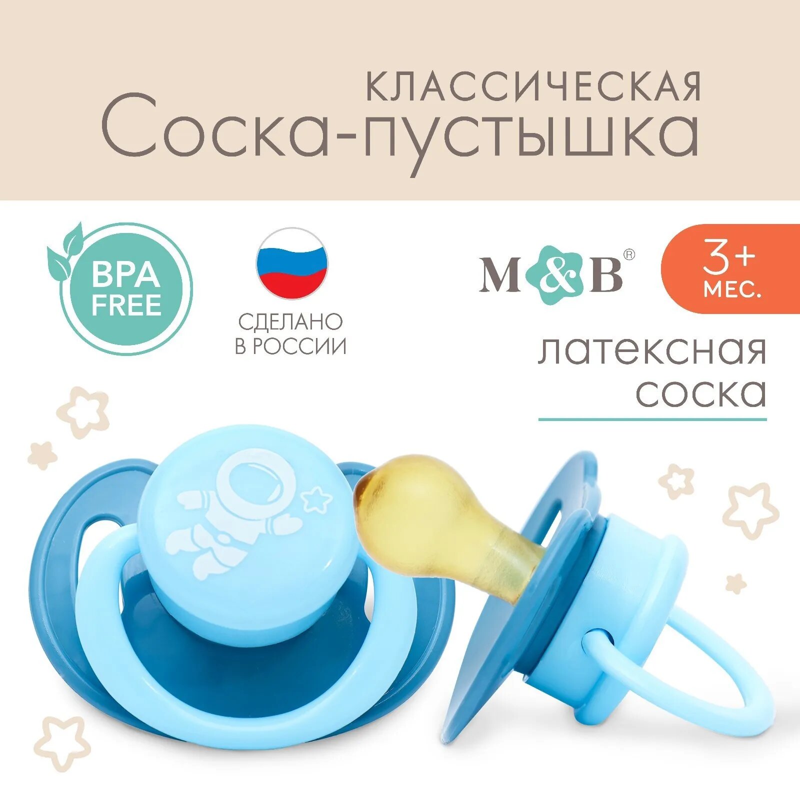 Mum&Baby Соска - пустышка классическая, латекс, +3мес., «Космонавт»