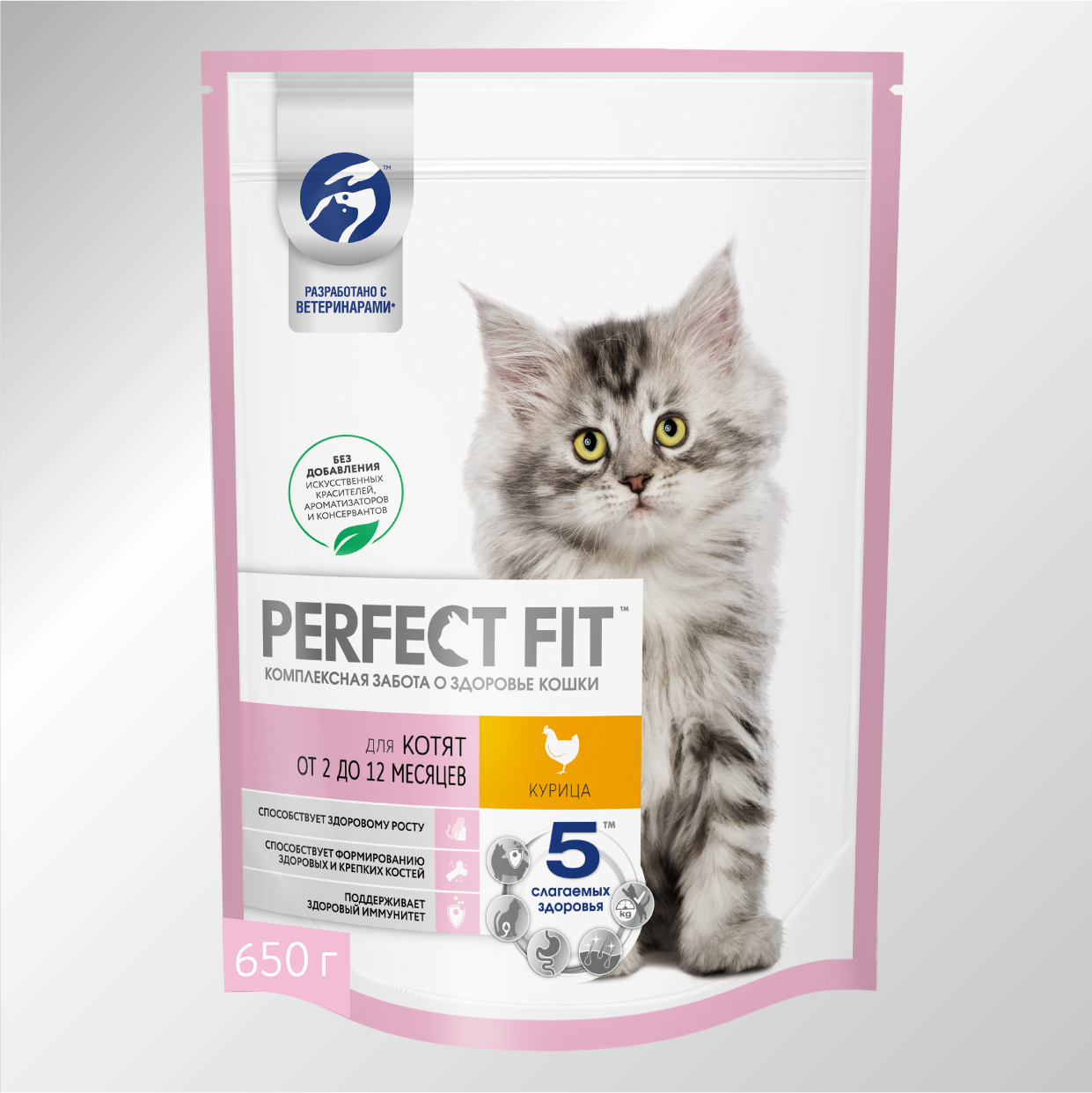 Корм сухой для котят PERFECT FIT с курицей, до 12 месяцев полнорационный, 650г