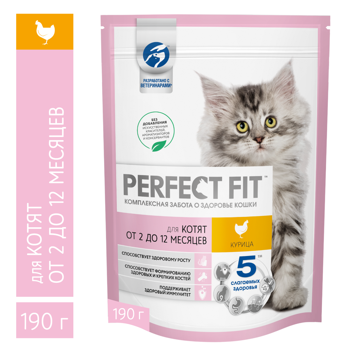 Ниже Вы можете прочитать отзывы на Cухой полнорационный корм PERFECT FIT для котят от 2 до 12 месяцев, с курицей, 4 шт по 190 г, ознакомится с подробными характеристиками, посмотреть интересные обзоры и фотографии на Cухой полнорационный корм PERFECT FIT для котят от 2 до 12 месяцев, с курицей, 4 шт по 190 г.