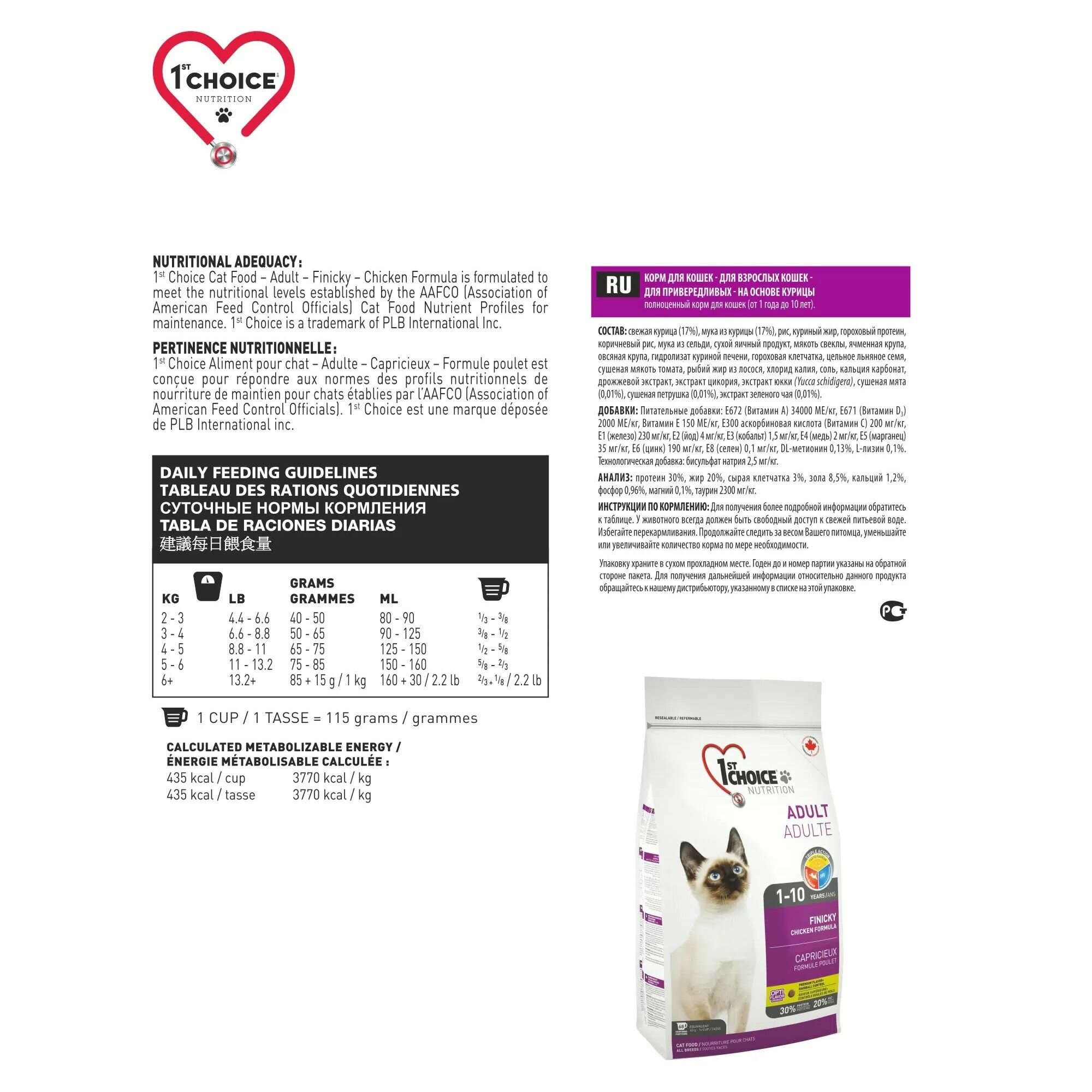 1st Choice Finicky Сухой корм для взрослых привередливых в еде кошек (с цыпленком), 5,44 кг