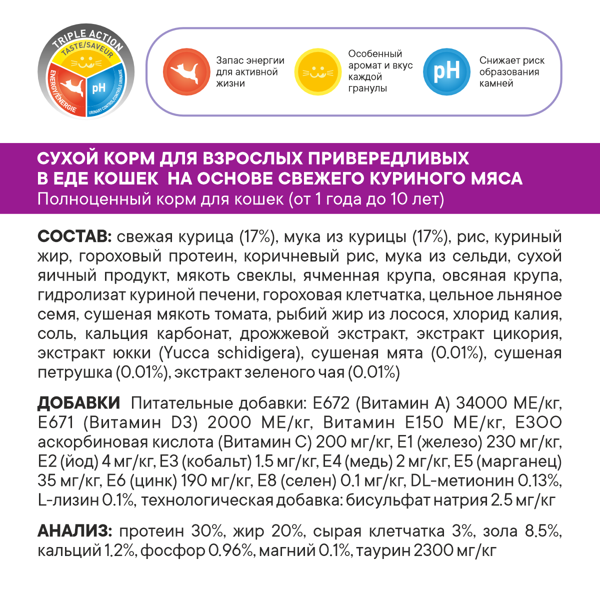 Сухой корм Фёст Чойс для Привередливых кошек Цыпленок 2,72 кг