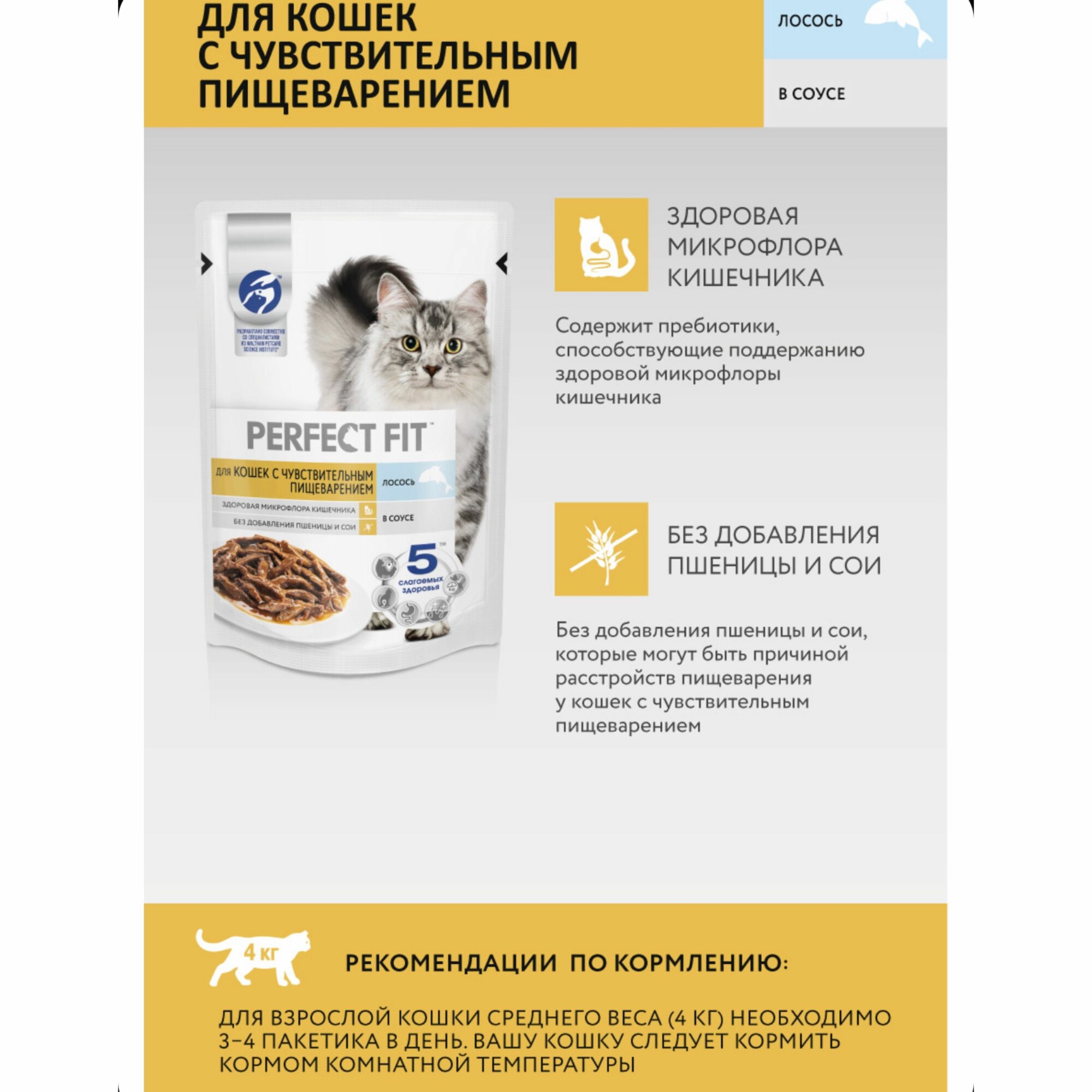 Купить Корм влажный Перфект фит для кошек с Чувствительным пищеварением Лосось в соусе 10 шт