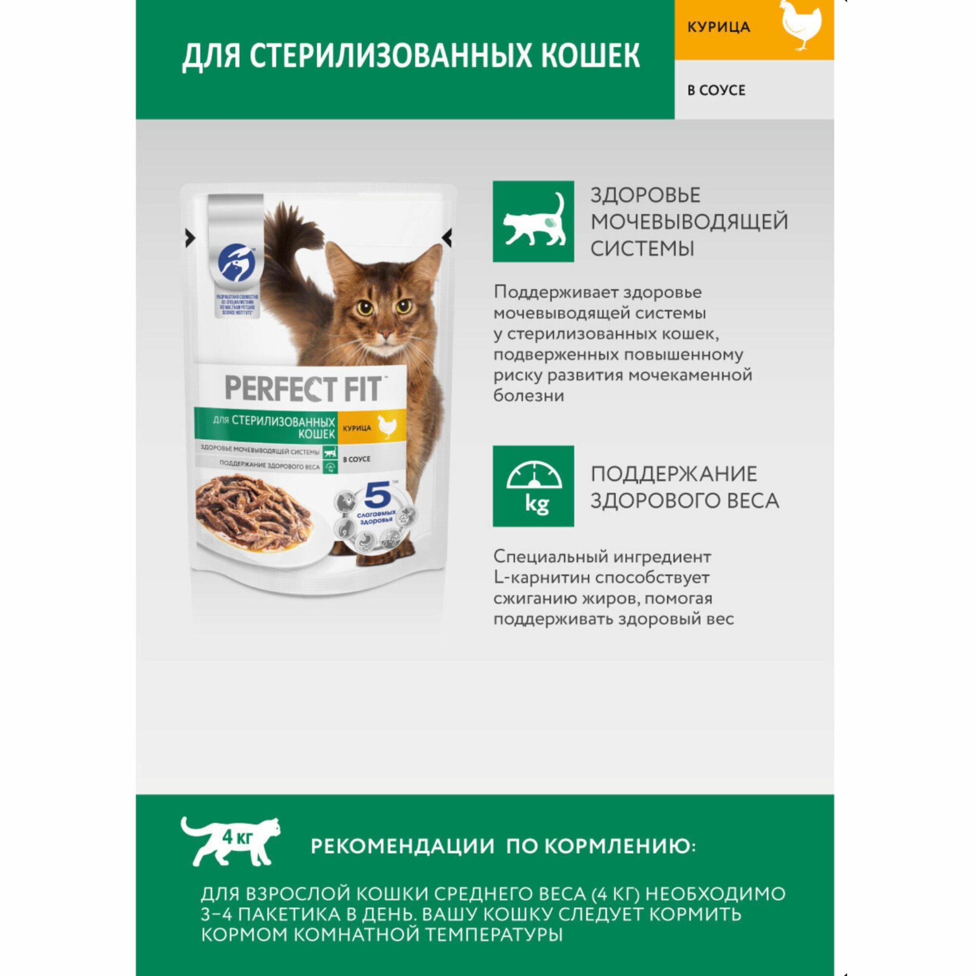 СохранитьКорм влажный Перфект Фит для Стерилизованных кошек с Курицей в соусе 10 шт интересное: