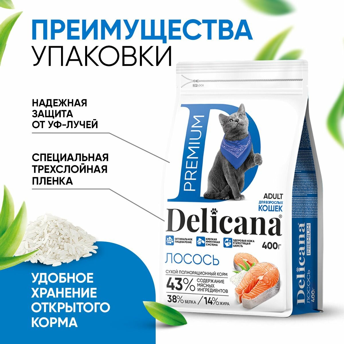 Купить DELICANA Корм сухой для взрослых кошек со вкусом лосося, 400 г
