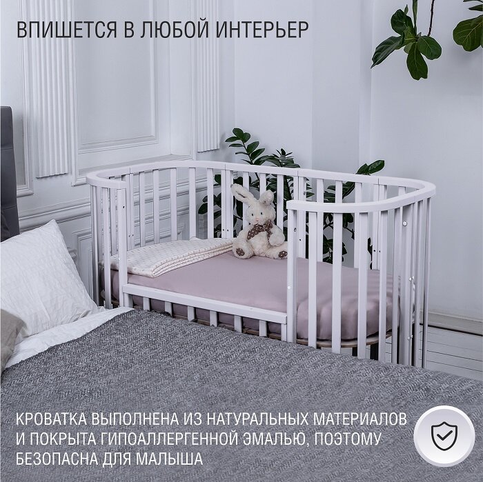 ВДК Детская кровать-трансформер «Слоник» с поперечным маятником, цвет белый