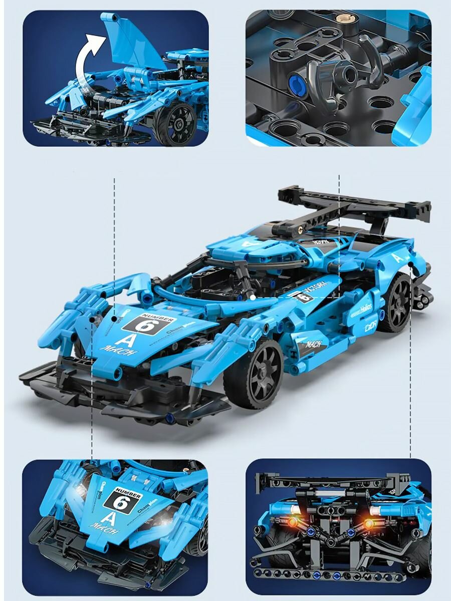 Конструктор Гоночный автомобиль (416 дет.) на РУ (свет)в кор