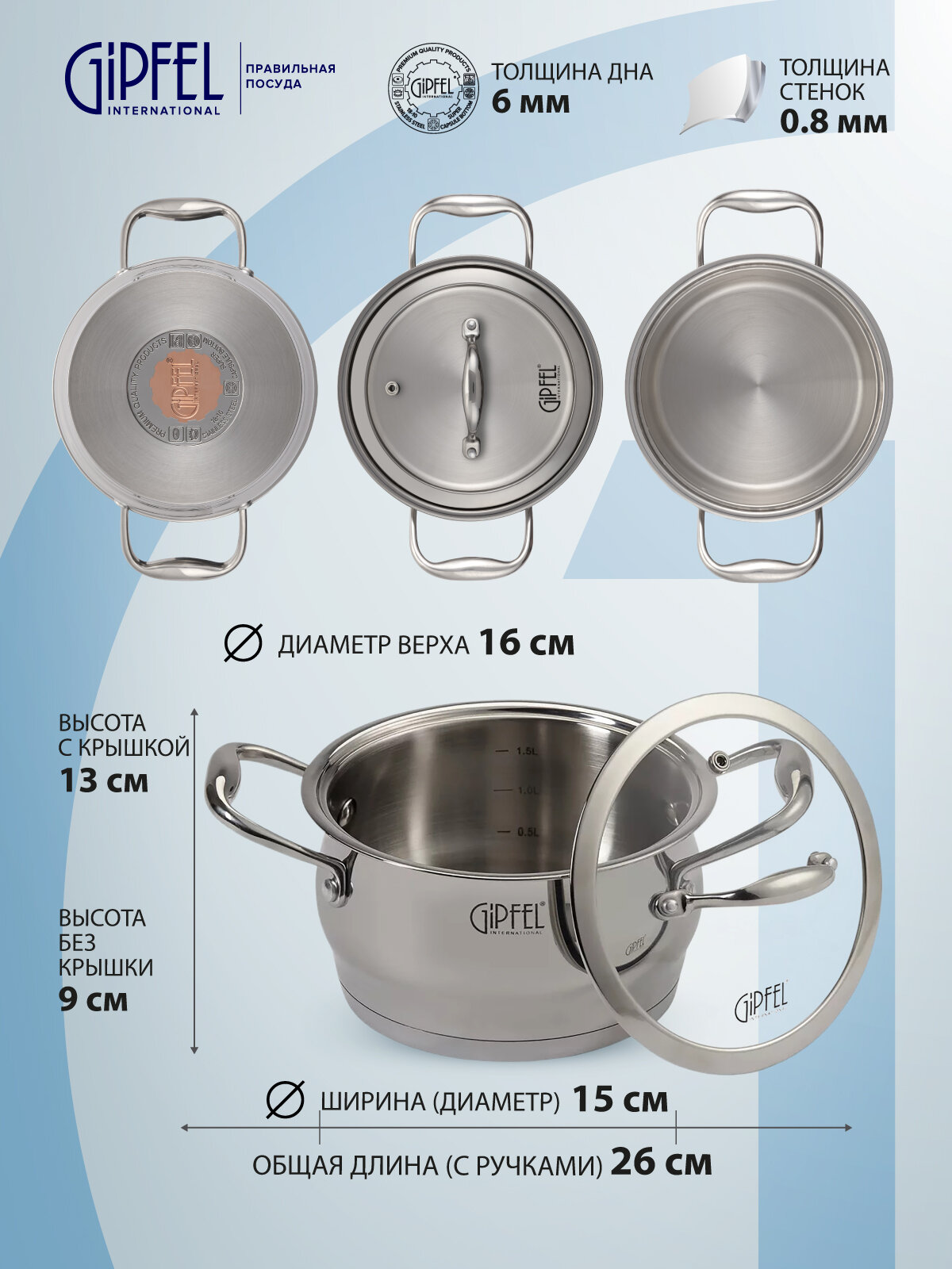 Кастрюля из нержавеющей стали Gipfel Cantata 1262 16 см/1,8 л стальной интересное: