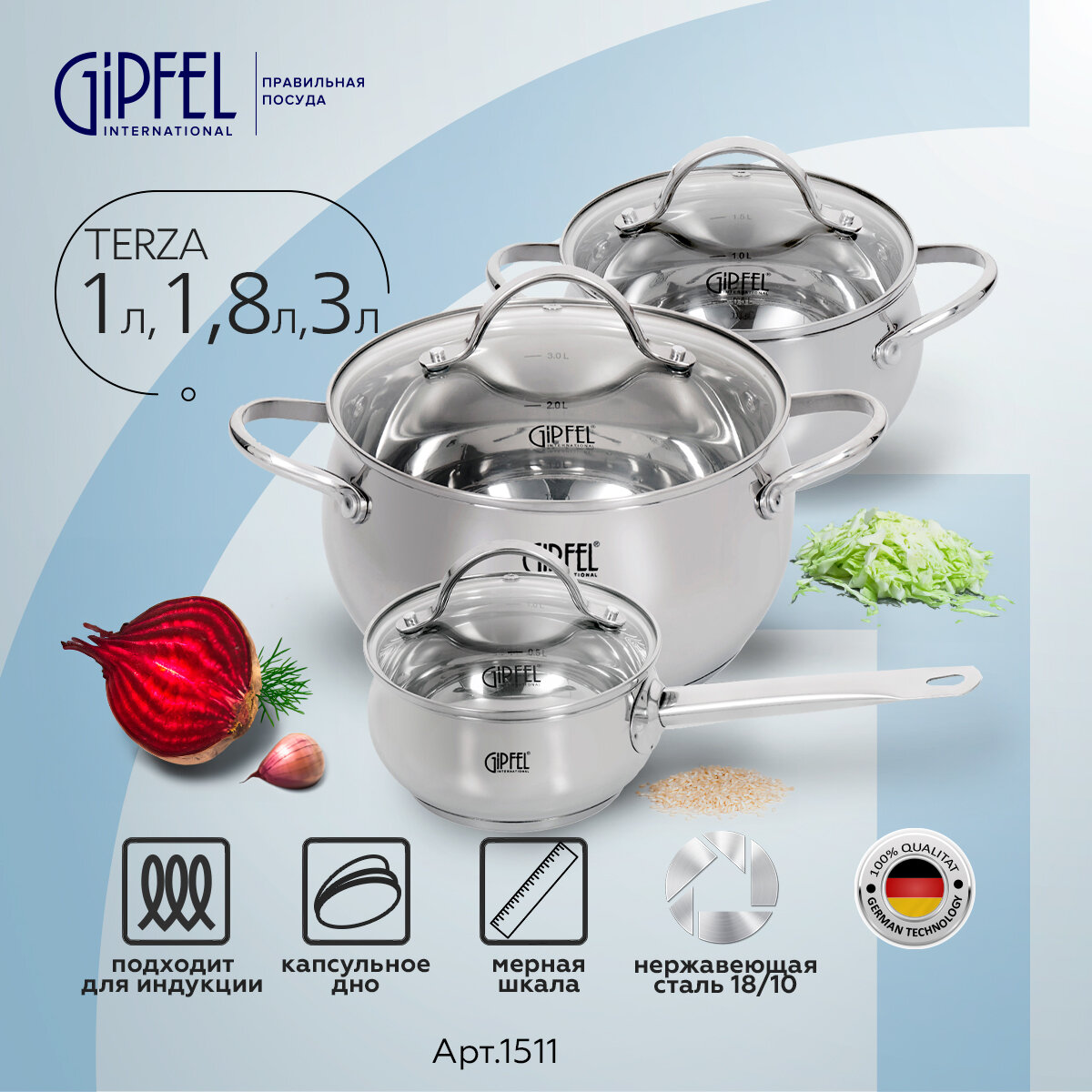 Набор посуды из нержавеющей стали Gipfel Terza 1511 стальной интересное:
