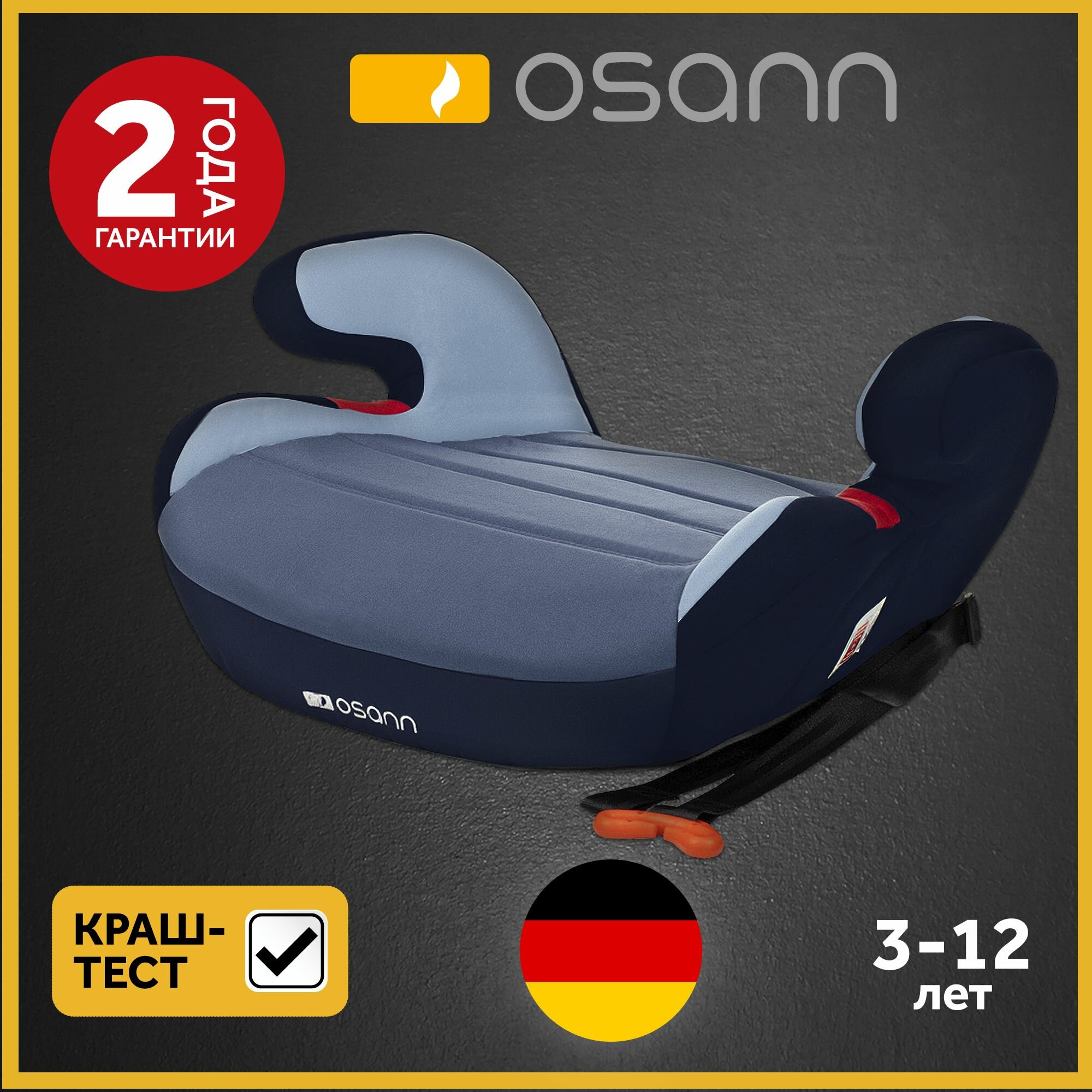 Автокресло детское Osann бустер JUNIOR GURTFIX, группа 2-3, от 15 до 36 кг, от 3 до 12 лет Nero (модель FB-208)