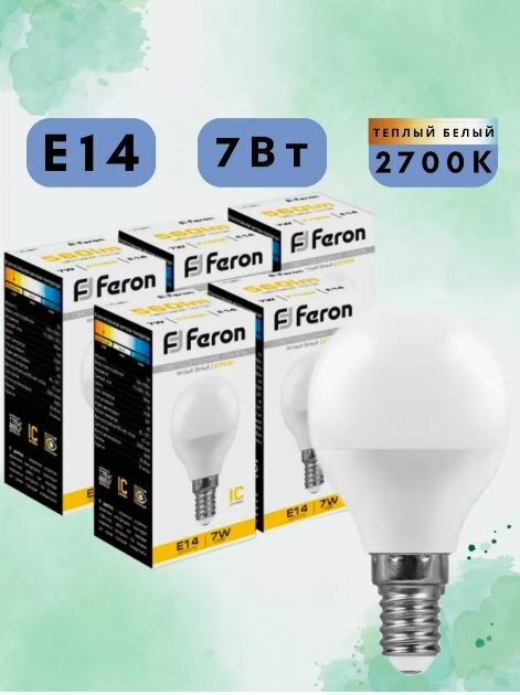 Лампа FERON LB-95 E14, 7Вт, 2700К, 5шт