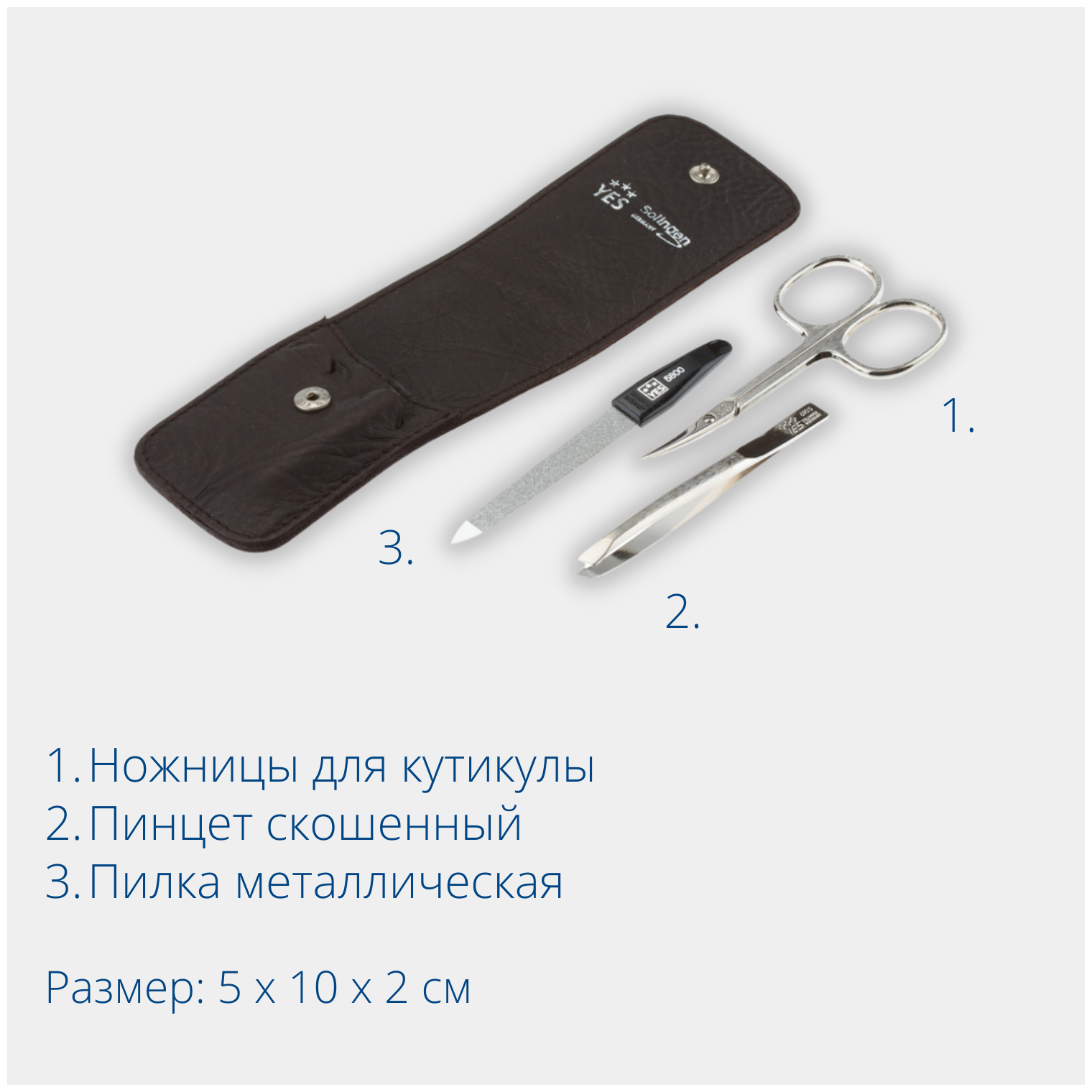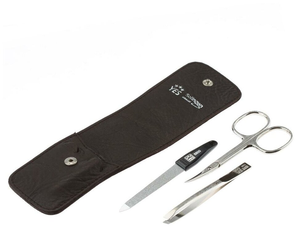 Yes 9010 Маникюрный набор yes, 3 пр. футляр: натуральная кожа, цвет коричневый