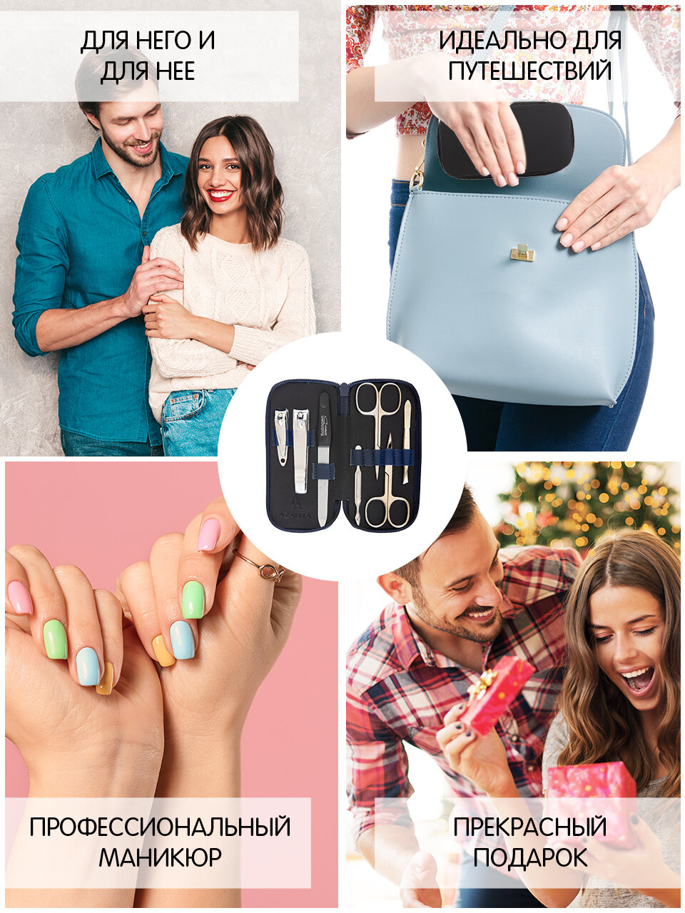Azalita / Профессиональный маникюрный набор, 7 предметов / Набор для маникюра, педикюра / цвет синий интересное: