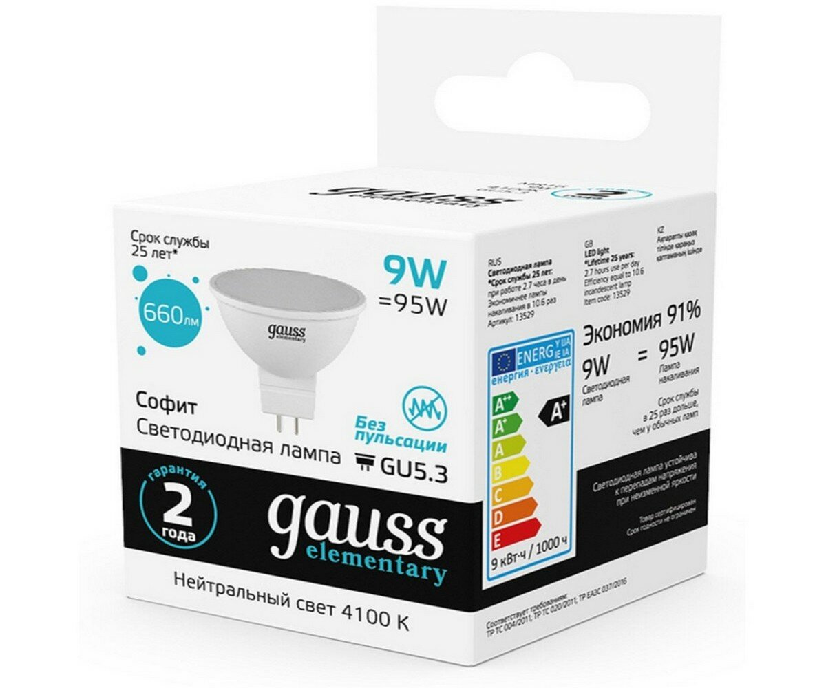Ниже Вы можете прочитать отзывы на Лампа светодиодная gauss 13529, GU5.3, 9 Вт, 4100 К, ознакомится с подробными характеристиками, посмотреть интересные обзоры и фотографии на Лампа светодиодная gauss 13529, GU5.3, 9 Вт, 4100 К.