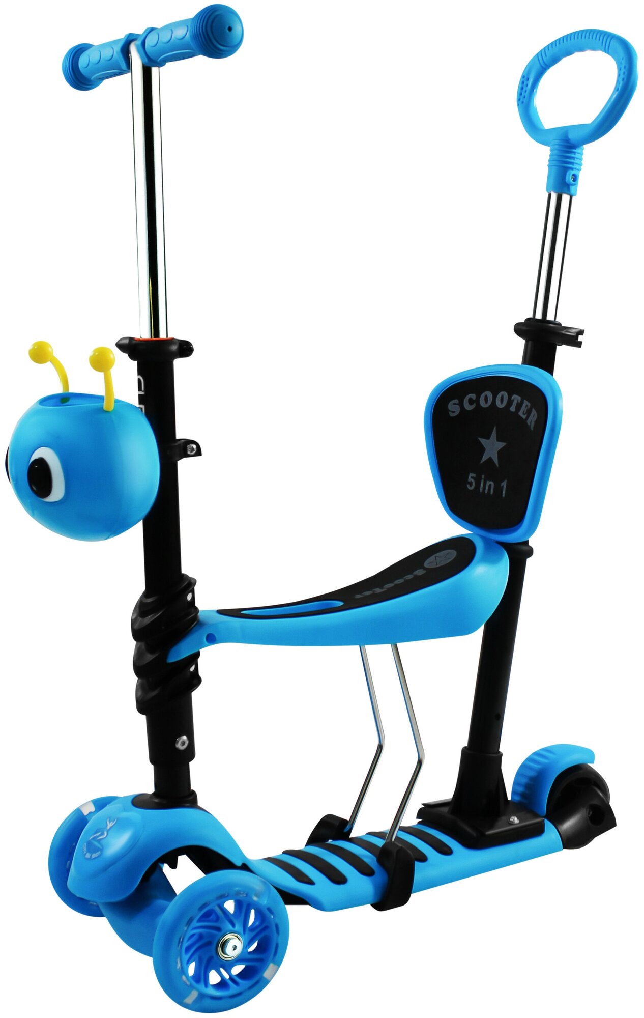 | Минусы: | Не поняли, почему на самокате написано 5 в 1, он скорее 3 в 1 |
