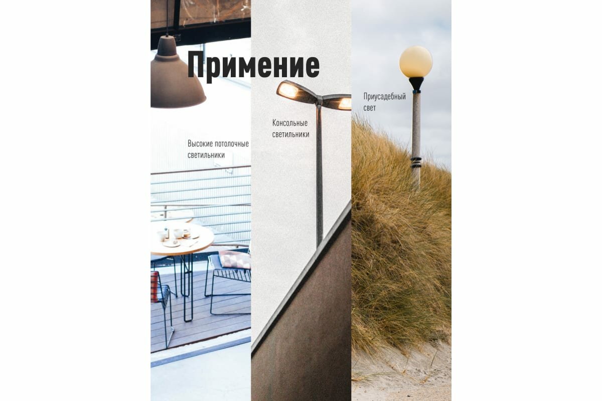 | Дополнительная информация | переходник на цоколь E40, класс энергоэффективности A, угол светового пучка 270 |