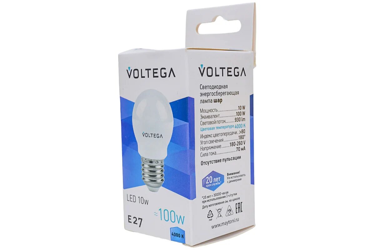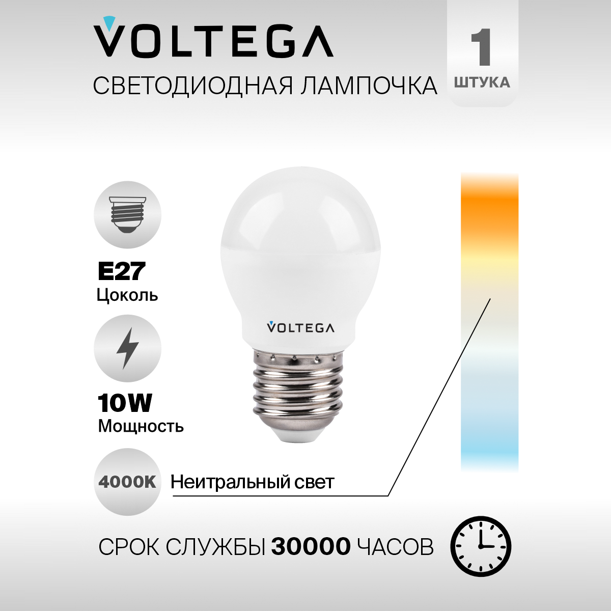 Купить Лампочка светодиодная E27 форма шар 10W нейтральный белый Voltega Simple Globe 4000K 1 штука