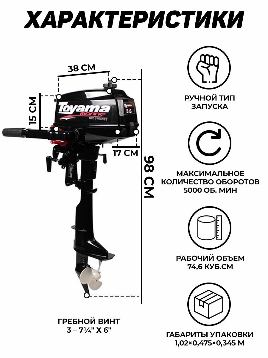 Подвесной лодочный мотор TOYAMA TC3.6BMS TOYAMA интересное: