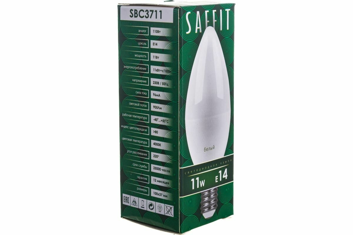 Лампа светодиодная SBC3711 Свеча E14 11W 4000K, SAFFIT 55133 (1 шт.)