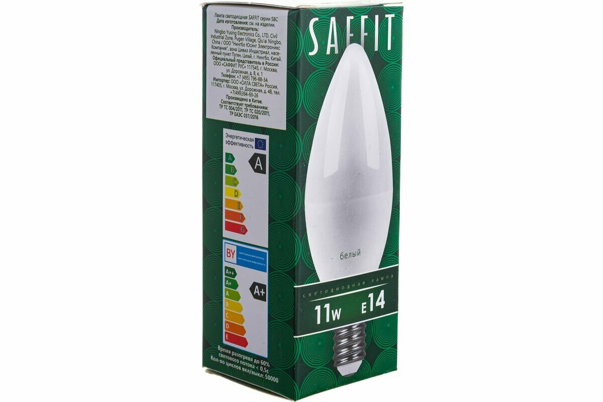 55133 Лампа светодиодная SAFFIT SBC3711 Свеча E14 11W 4000K, упаковка 10шт