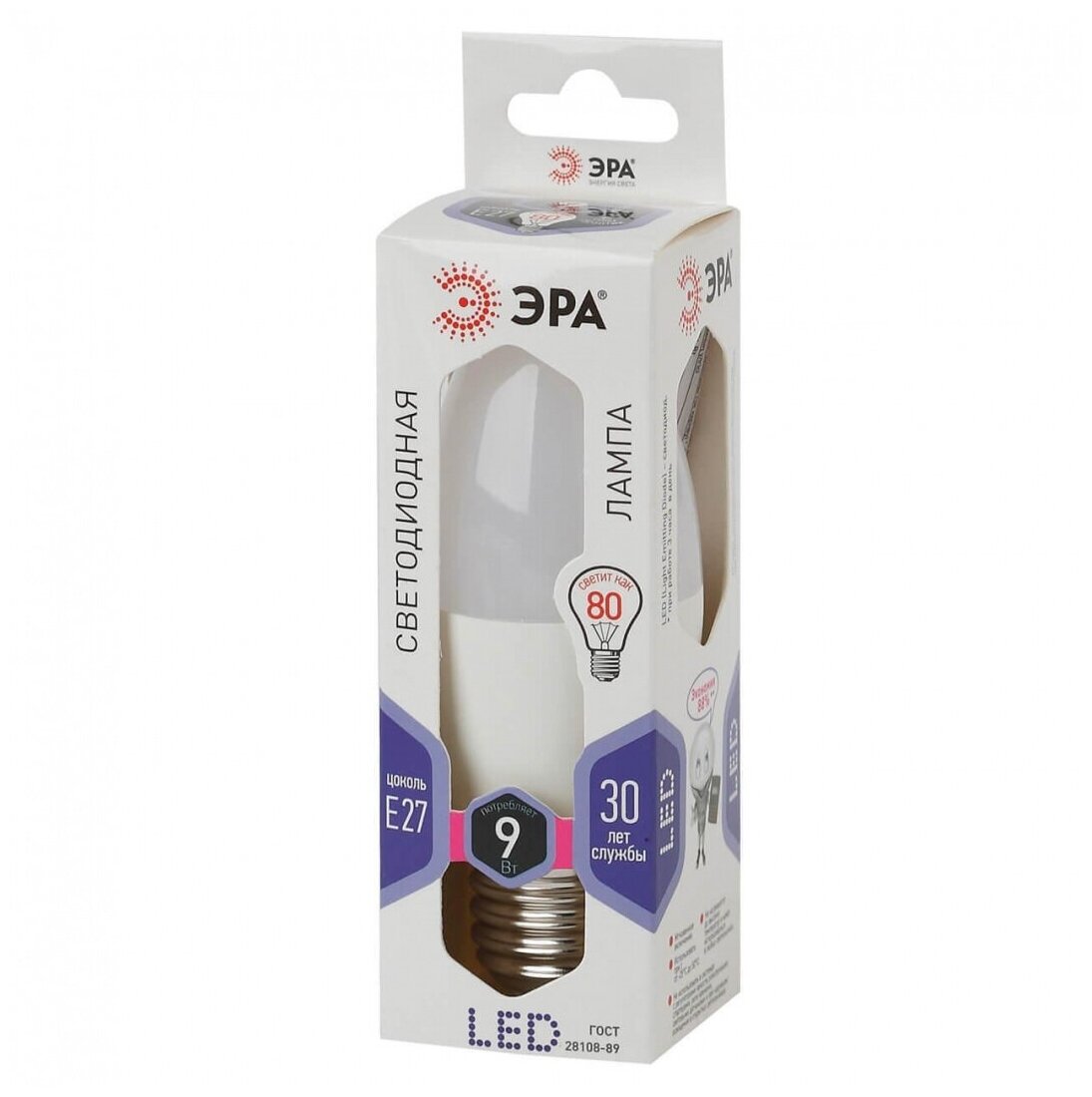 Купить ЭРА стандарт свеча B35 E27 9W(720lm) 6500К 6К 110x37 B35-9w-860-E27 0355 (арт. 686615)