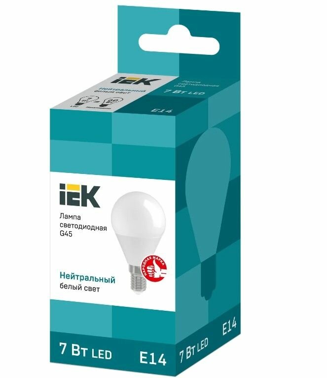(20 шт.) Светодиодная лампочка IEK шар G45 E14 7W(630lm) 4000K 4K 78x45 матов. ECO LLE-G45-7-230-40-E14 . Цоколь E14