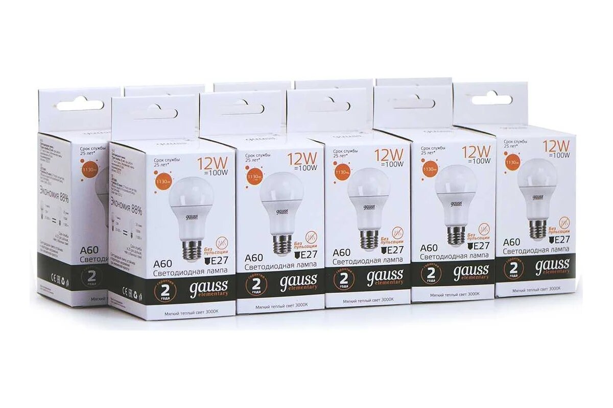 Упаковка ламп LED GAUSS E27, груша, 12Вт, 23212P, 2 шт.