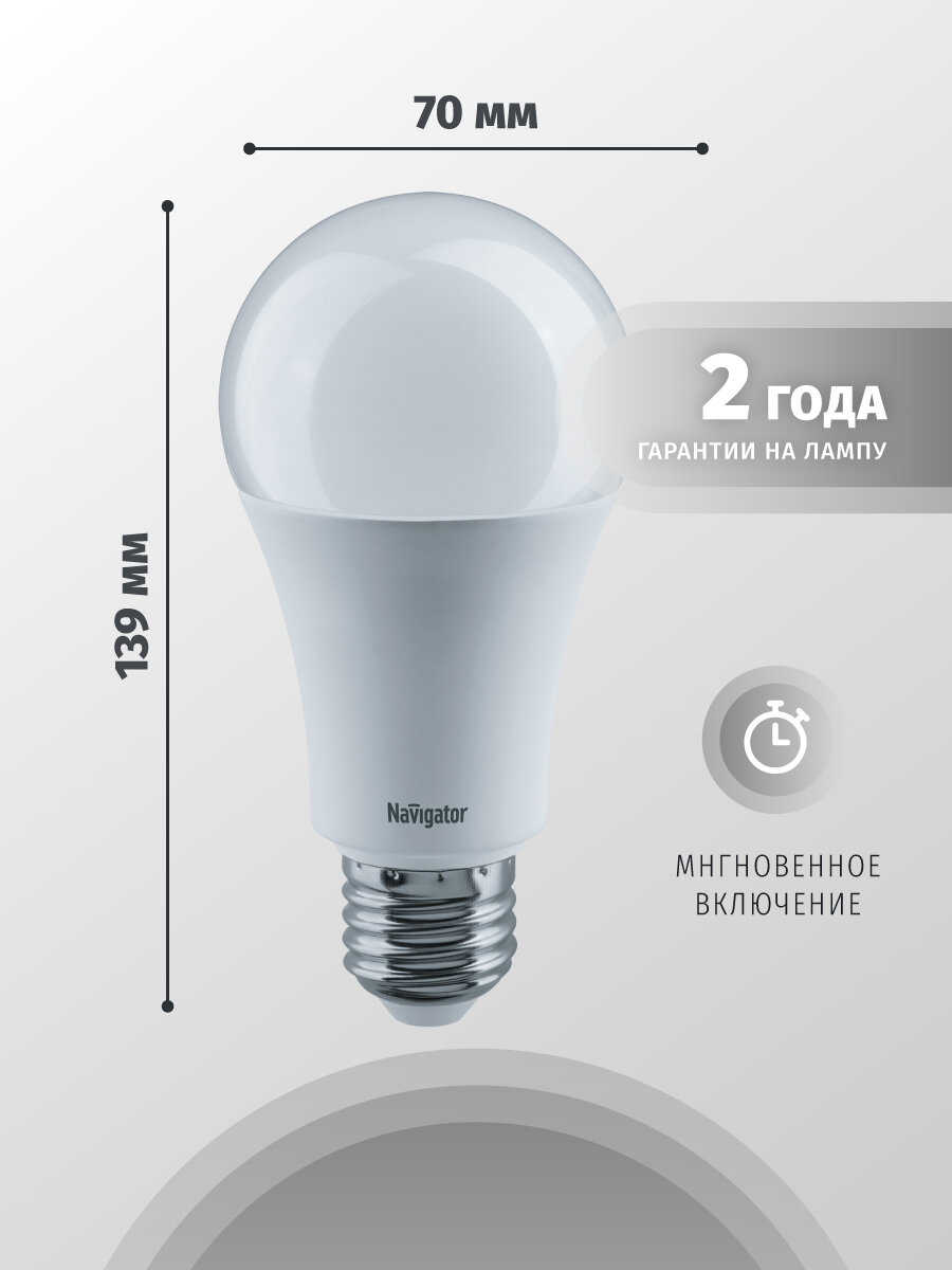 Лампа светодиодная Navigator 61282, E27, A70, 20 Вт, 4000 К