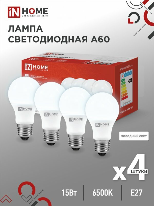 IN HOME Лампа светодиодная LED-A60-VC 4PACK 15Вт 230В Е27 6500К 1430Лм (4шт./1упак.) (арт. 4690612047690) интересное: