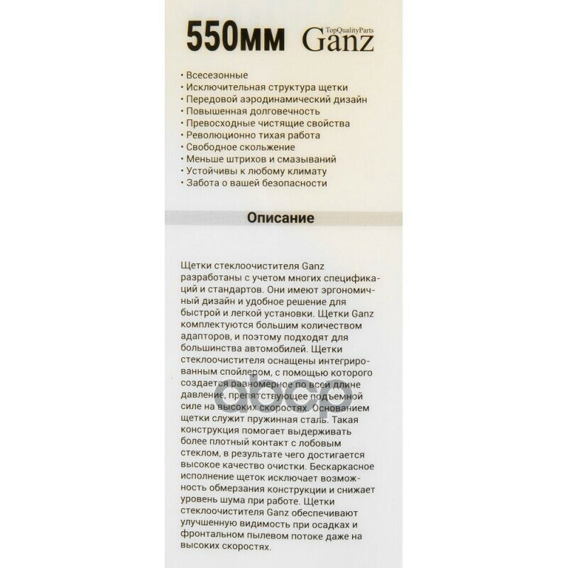 GIS01035 GANZ Щетка стеклоочистителя 550 мм бескаркасная 1 шт (10 адаптеров) GANZ NEW GIS01035