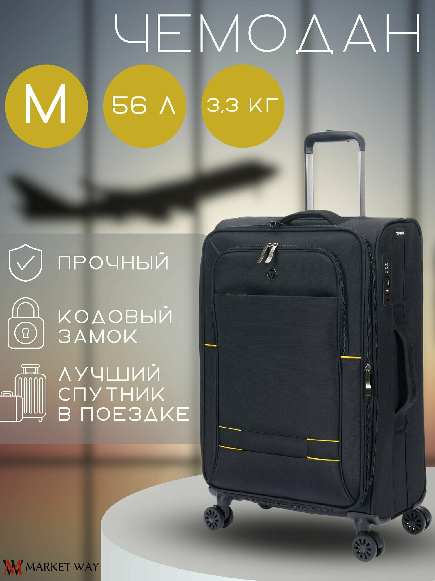 Чемодан средний TORBER Brosno T1901M-Black, чёрный, нейлон 600D, 3,3 кг, 43,5х26х68 см, 56 л