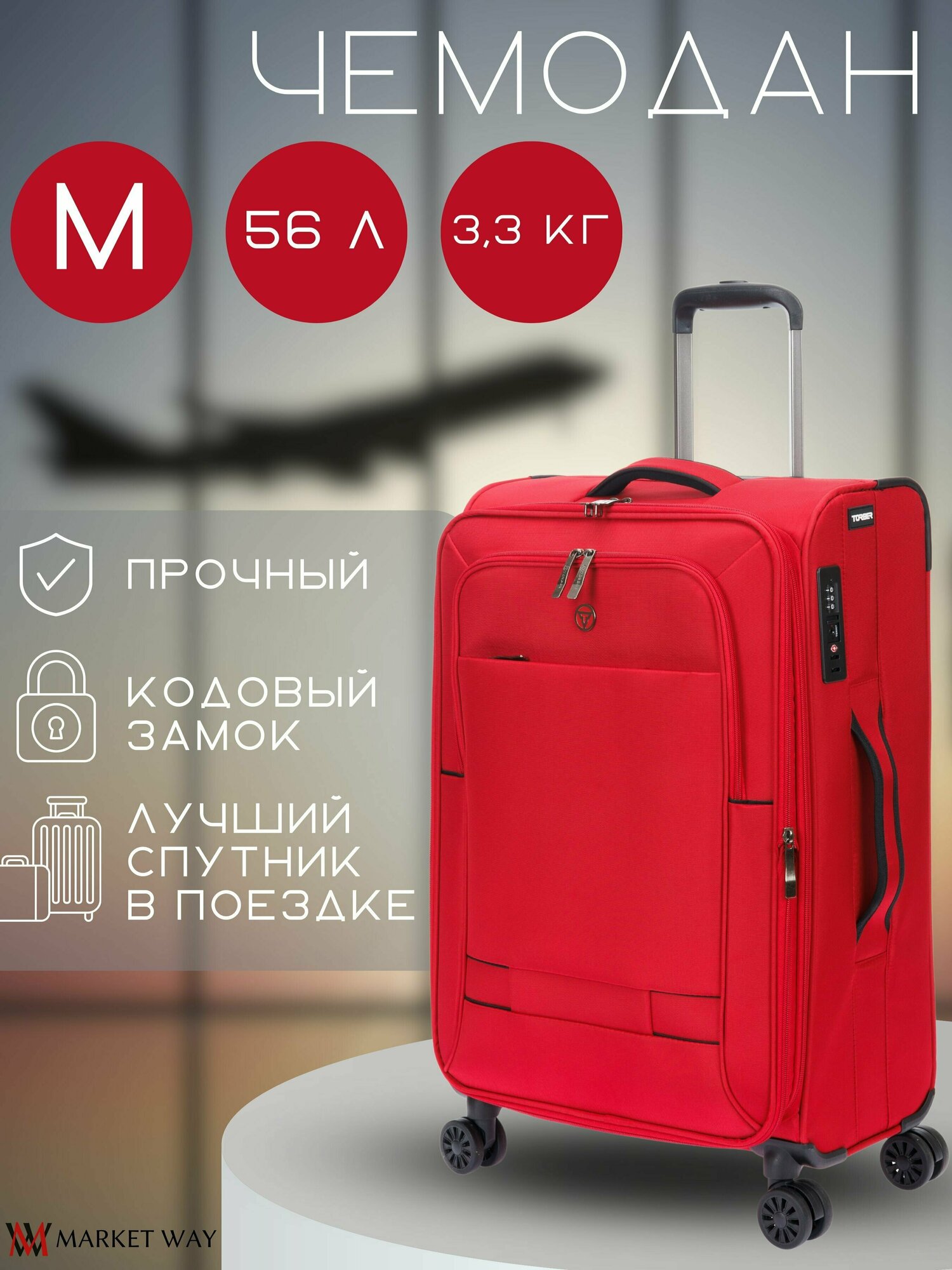 TORBER T1901M-Red Чемодан средний brosno torber