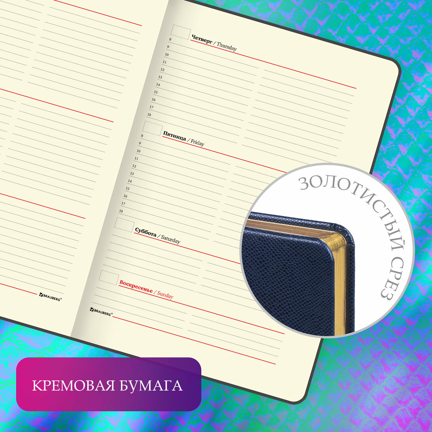 Еженедельник недатированный А5 145х215 мм, BRAUBERG "Iguana", под кожу, 64 л, синий, 114476
