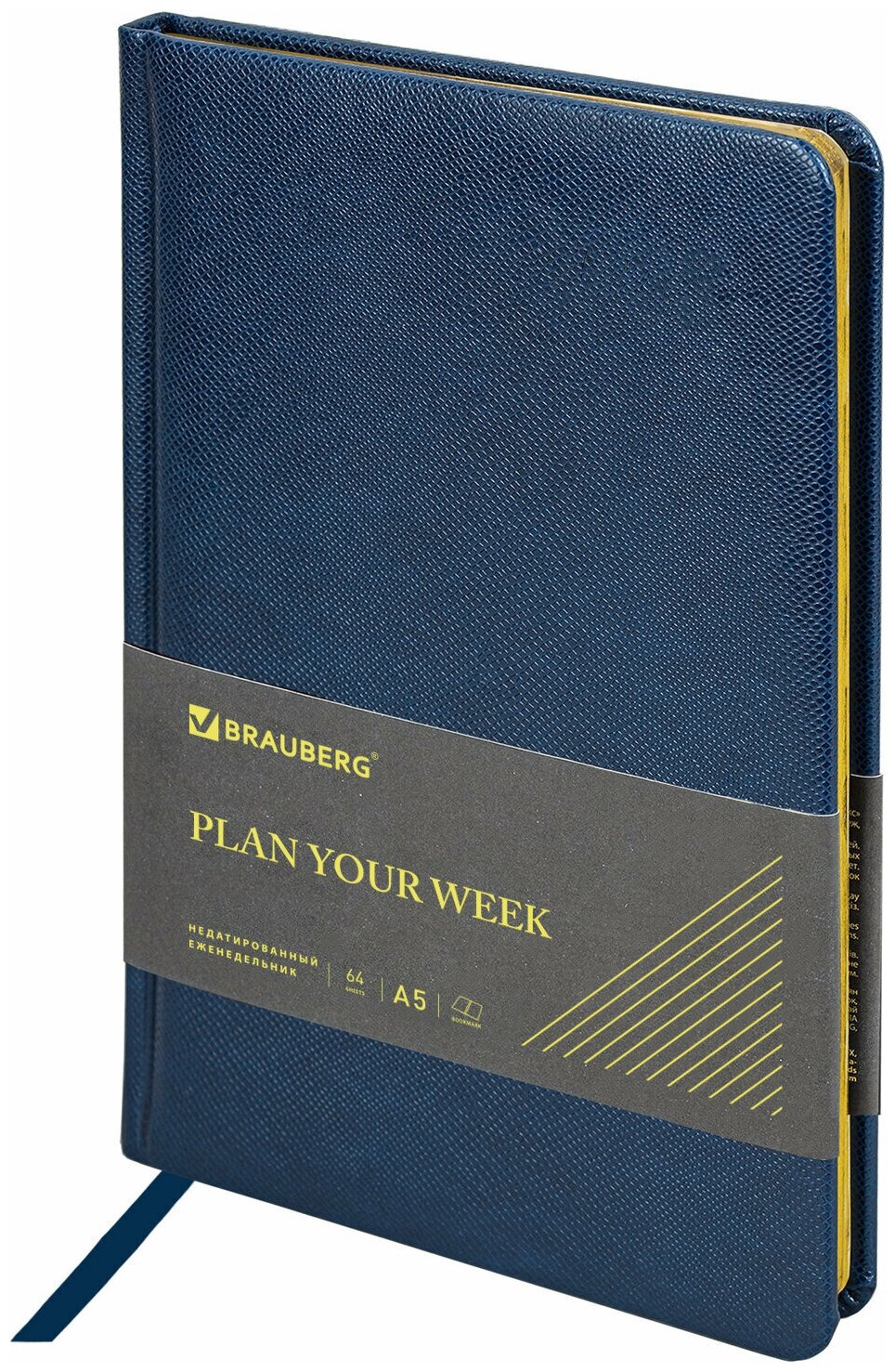 Купить Еженедельник-планер (планинг) / записная книжка / блокнот недатированный А5 145х215 мм Brauberg Iguana, под кожу, 64 листа, синий, 114476