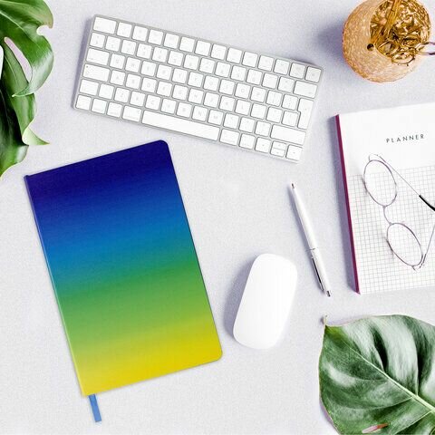 Ежедневник-планер (планинг) / записная книжка / блокнот недатированный А5 138х213мм Brauberg Gradient под кожу, 136 листов, синий-зеленый, 114460