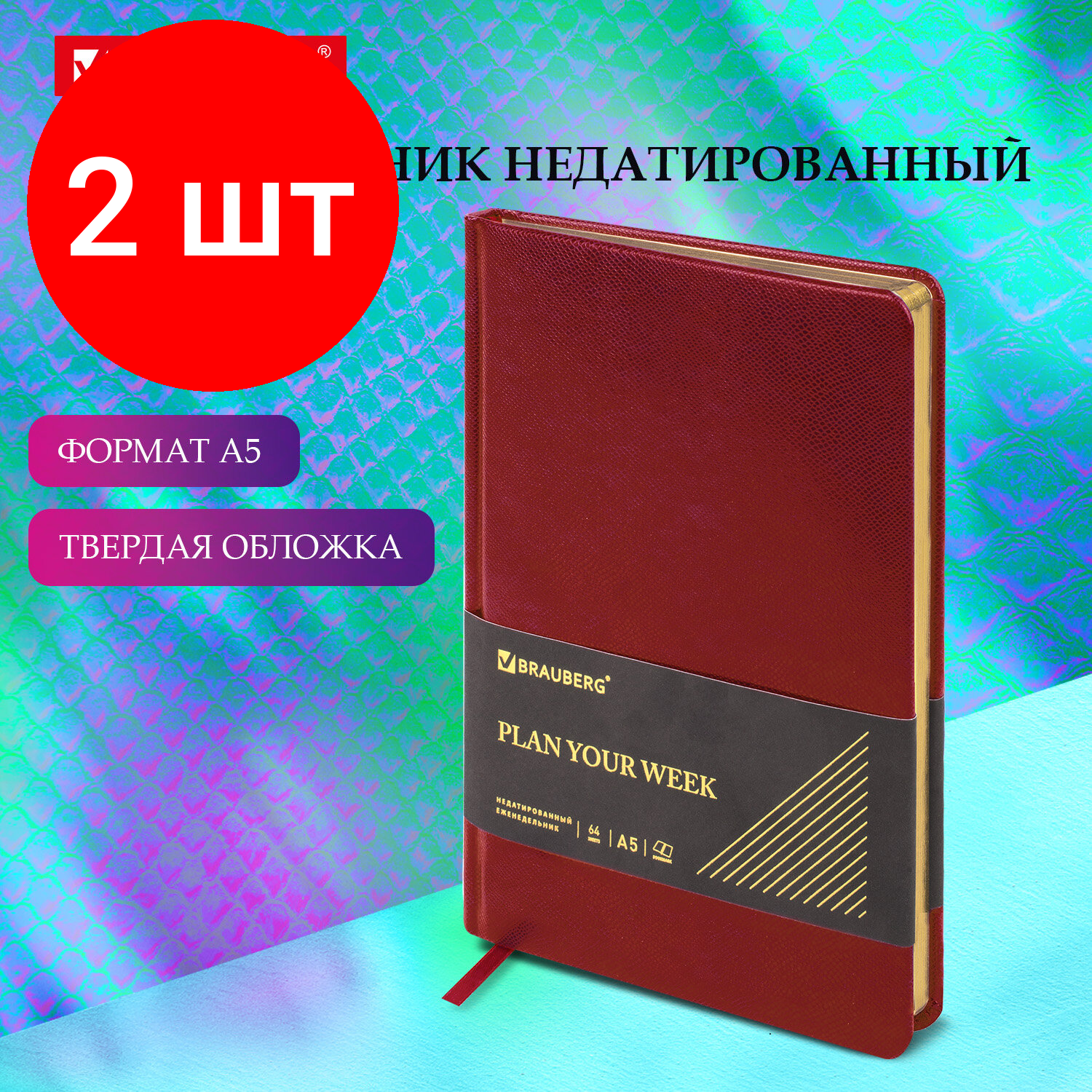 Набор из 2 шт, Еженедельник недатированный А5 145х215 мм, BRAUBERG "Iguana", под кожу, 64 л, красный, 114477 (114477)