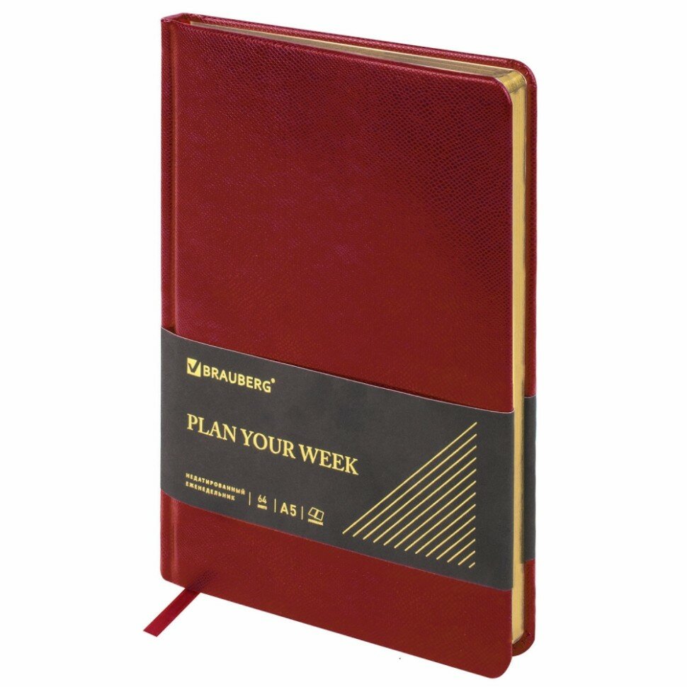 Еженедельник-планер (планинг) / записная книжка / блокнот недатированный А5 145х215 мм Brauberg Iguana, под кожу, 64 листа, красный, 114477