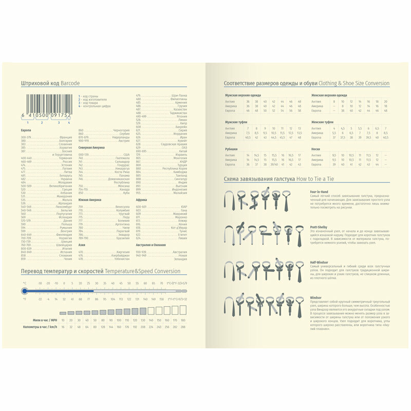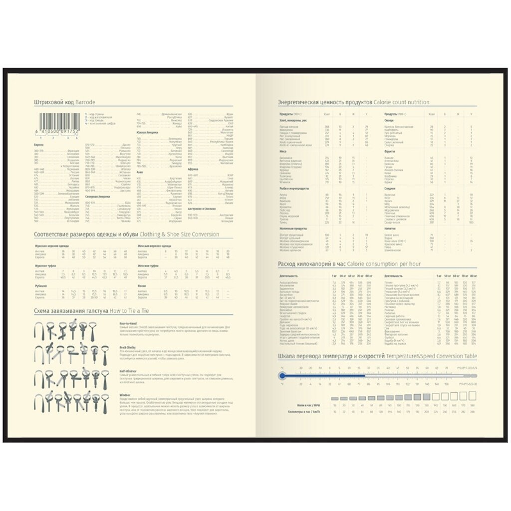 | Особенности | ляссе / металлические уголки на обложке / перфорация уголков / поля / прошивка по периметру обложки / справочная информация / цветной обрез |