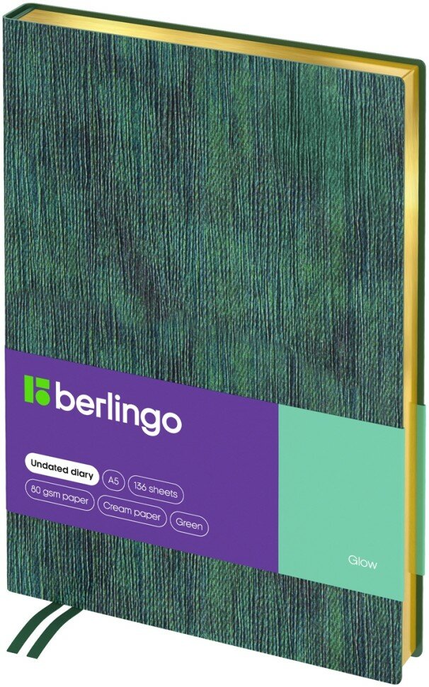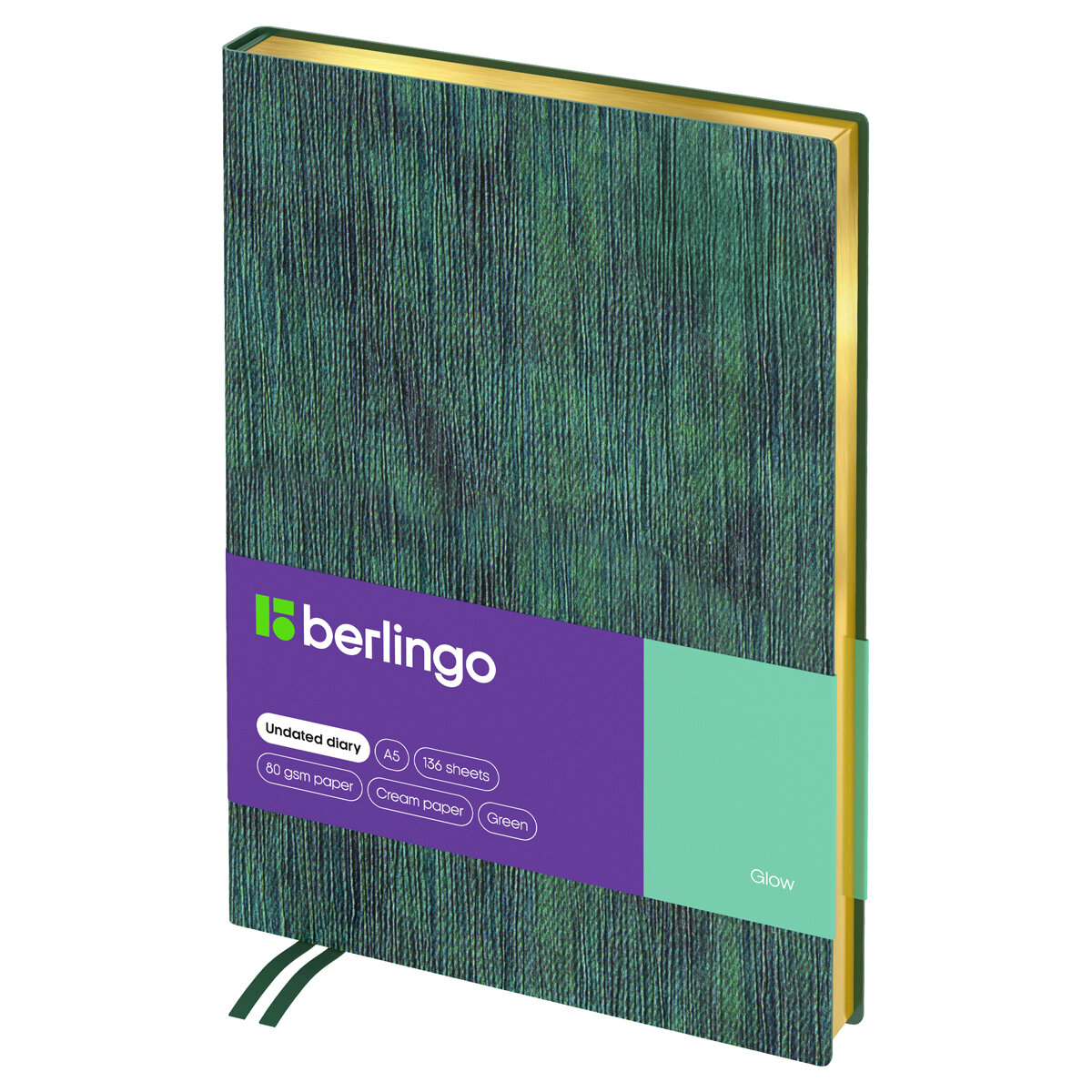 Купить Ежедневник недатированный, A5, 136л., кожзам, Berlingo «Glow», зол. срез, зеленый