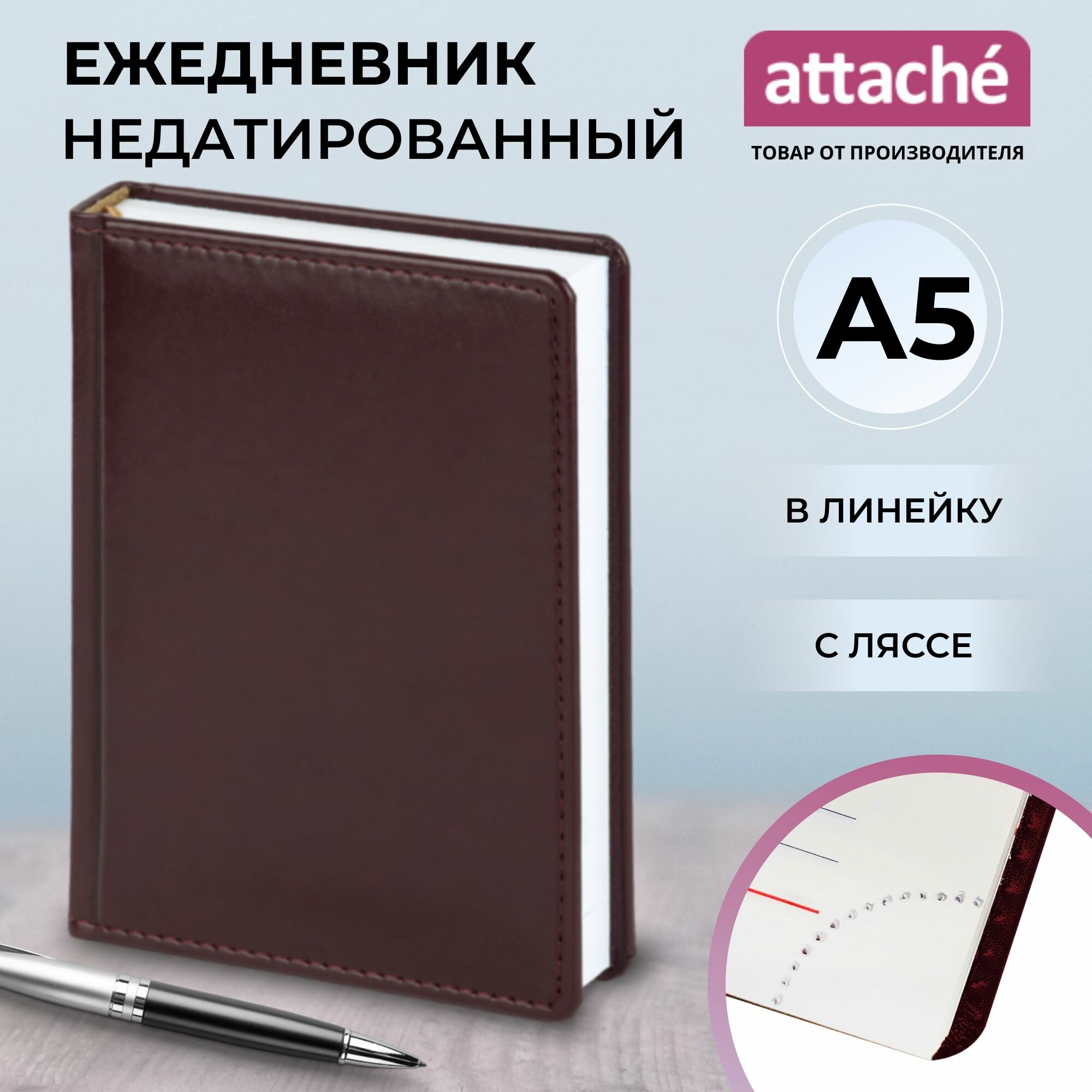 Ежедневник Attache недатированный, бордо, А5, 142*210 мм, 176 листов, Каньон