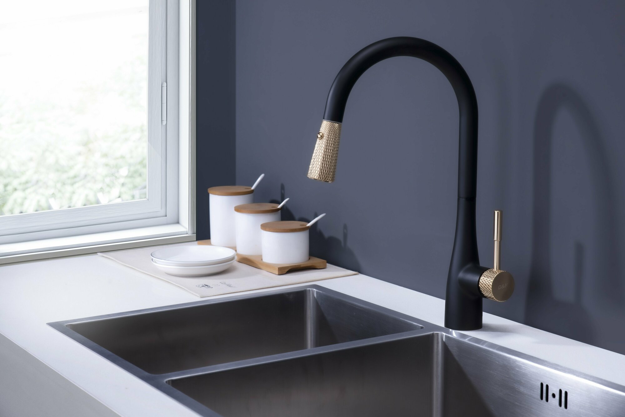 Смеситель для кухни D&K Rhein DA1462517A, черный/золото