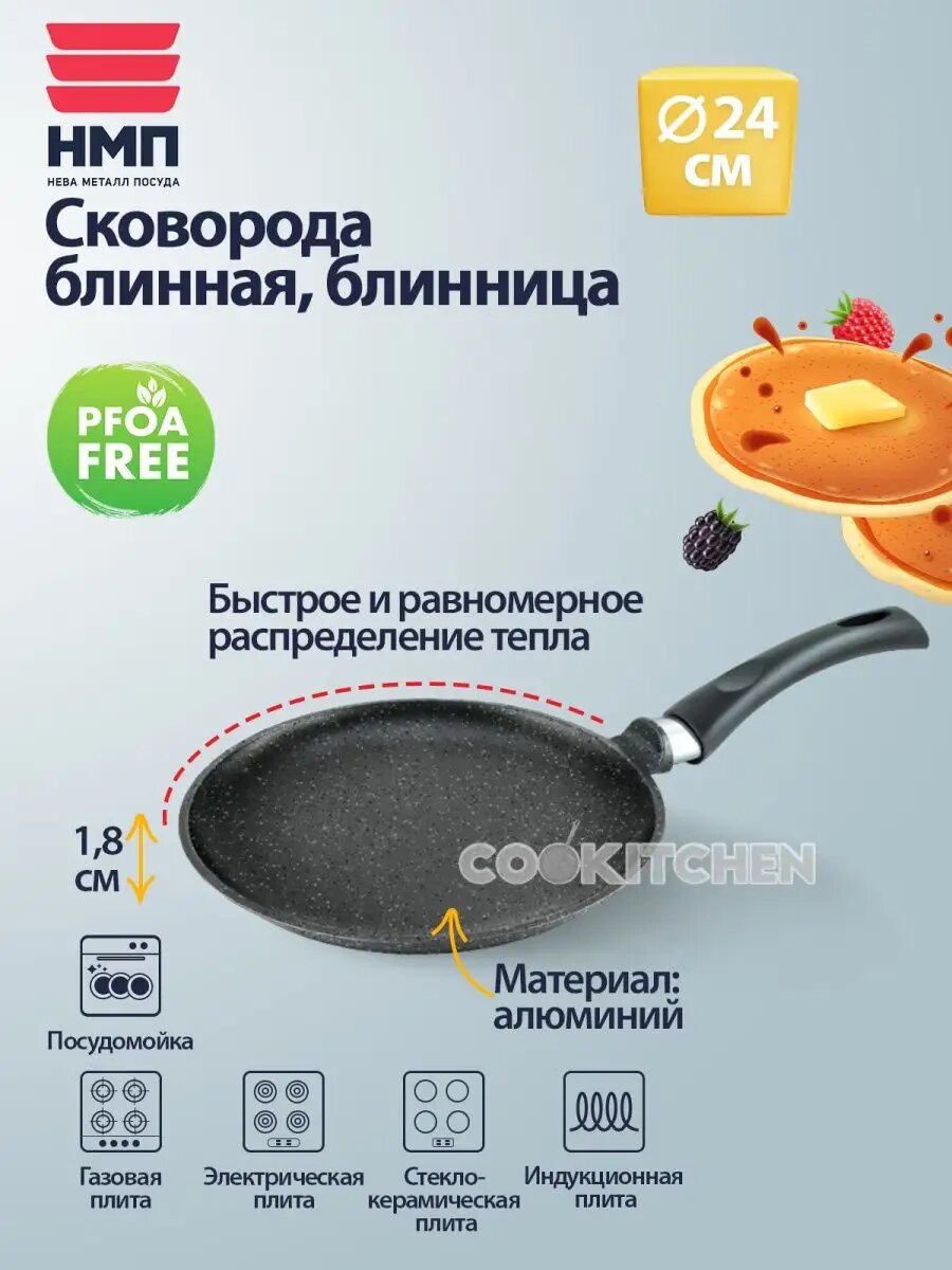 СохранитьСковорода блинная нева металл посуда L186224i Индукция Гранит 24 см интересное: