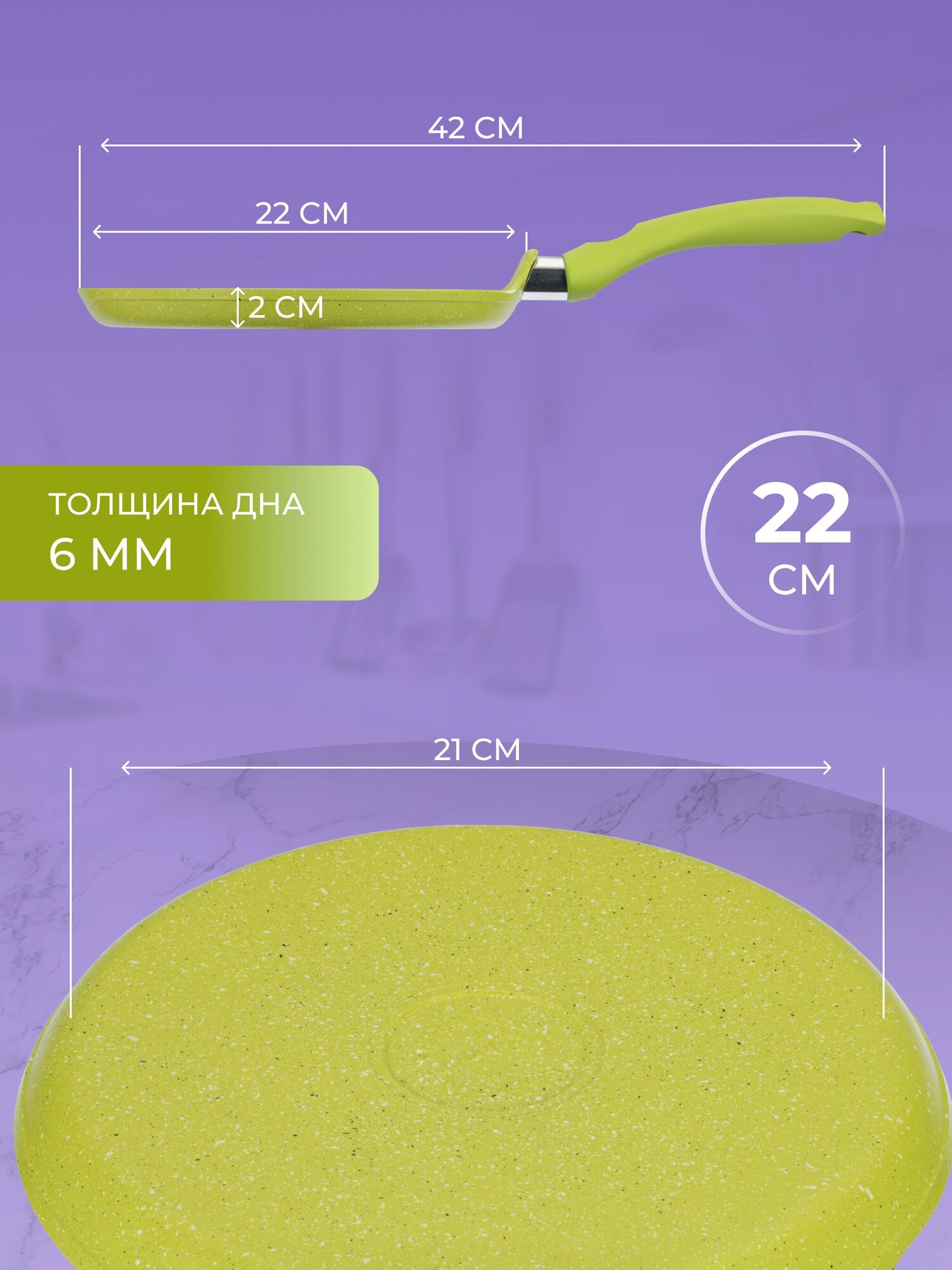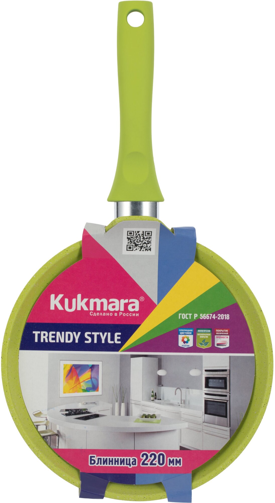 Сковорода блинная Kukmara d220 антипригарное покрытие "Trendy style" (lime) - сб220tsl