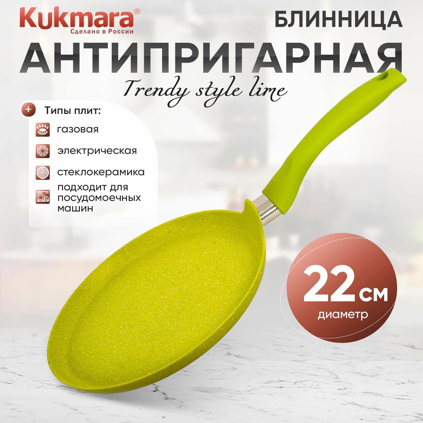 Сковорода блинная Kukmara сб220tsl литая 22см АП (Trendy style lime)