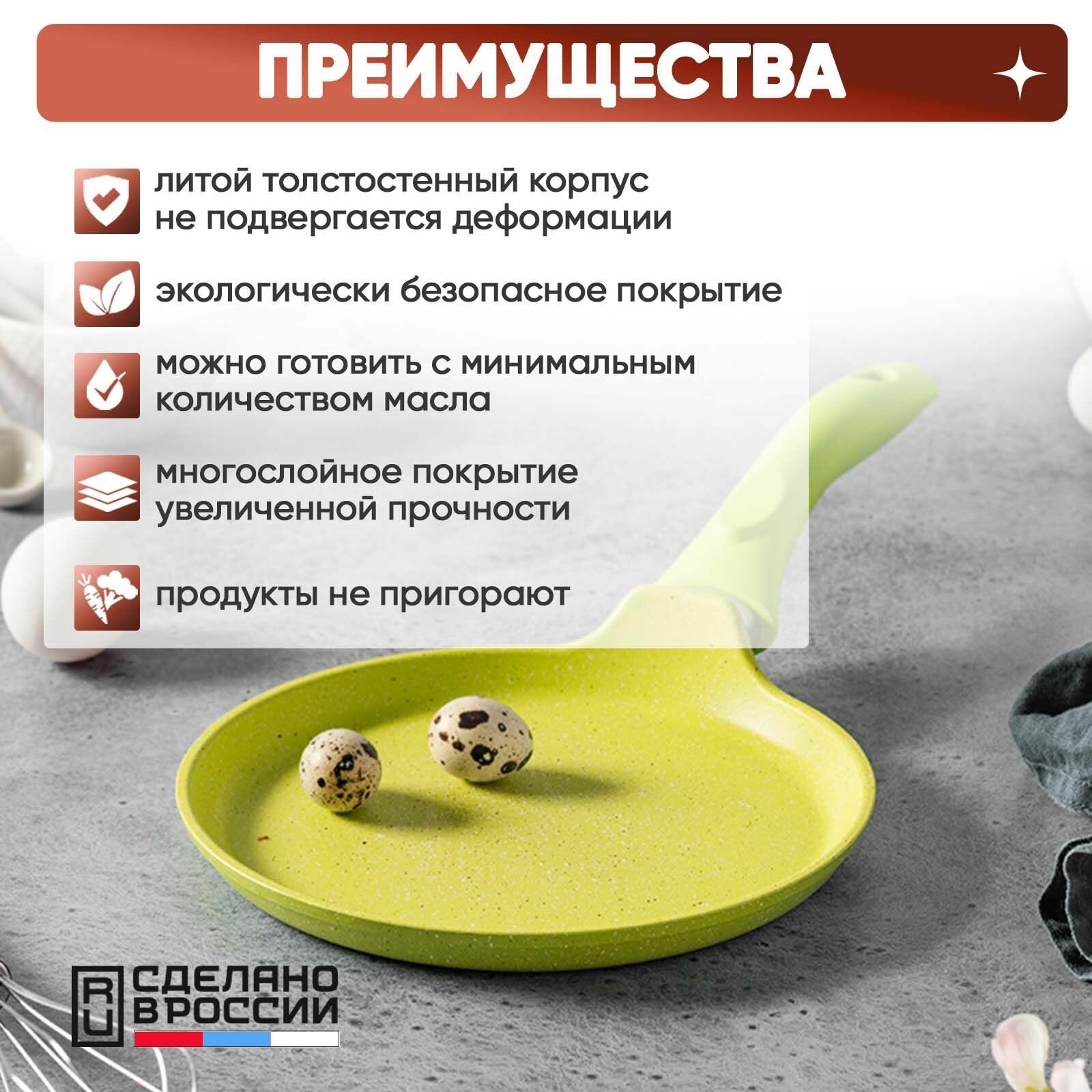 Сковорода блинная кукмор сб220tsl 22 см, зеленый